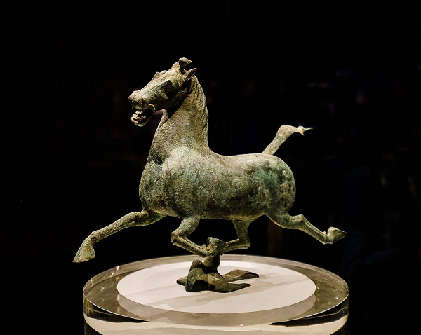 當然,也(yě)有(yǒu)觀察能(néng)力的(de)正面例子(zǐ),那(nà)就(jiù)是(shì)我國(guó)東(dōng)漢時(shí)期大(dà)名鼎鼎的(de)銅奔馬-馬 踏飛(fēi)燕。其形象矯健俊美(měi),别具風(fēng)姿。馬昂首嘶鳴,軀幹壯實而四肢修長(cháng),腿蹄輕♥捷,三足騰空(kōng)、飛(fēi)馳向前,一(yī)足踏飛(fēi)燕。仔細觀察,四個(gè)蹄子(zǐ)的(de)動作(zuò)←完全正确,可(kě)謂神來(lái)之筆(bǐ)。
